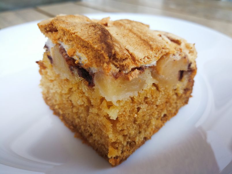 Este pastel de manzana con merengue tiene una buenísima pinta, ¡y te aseguro que sabe aún mejor!